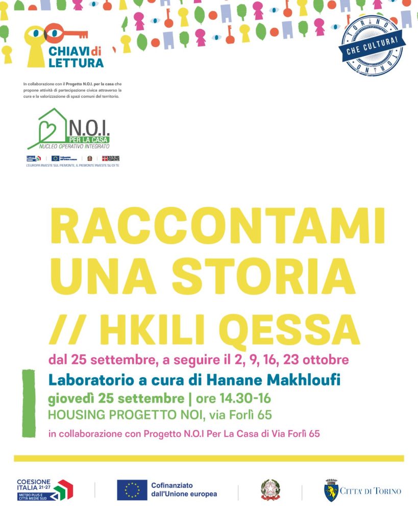 Hkili Qessa è un viaggio nella narrazione orale dove ogni racconto tramandato di famiglia in famiglia diventa memoria collettiva e legame tra culture. Attraverso 5 incontri, un gruppo di donne condividerà storie, le trascriverà e le trasformerà in un libro attraverso la condivisione e la partecipazione, arricchito da musica, sapori e ricordi d’infanzia.
